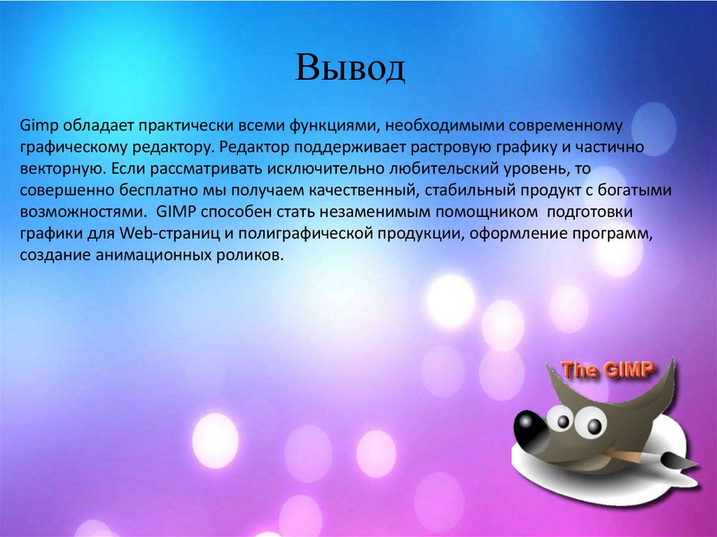 ВыводGimp обладает практически всеми функциями, необходимыми современному