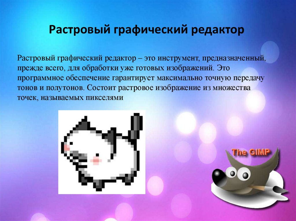 Растровый графический редакторРастровый графический редактор – это инструмент, предназначенный,