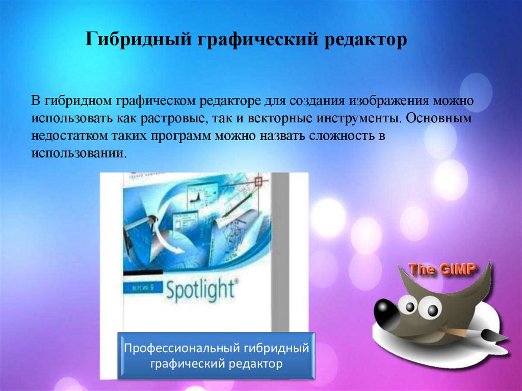 Гибридный графический редакторВ гибридном графическом редакторе для создания изображения можно