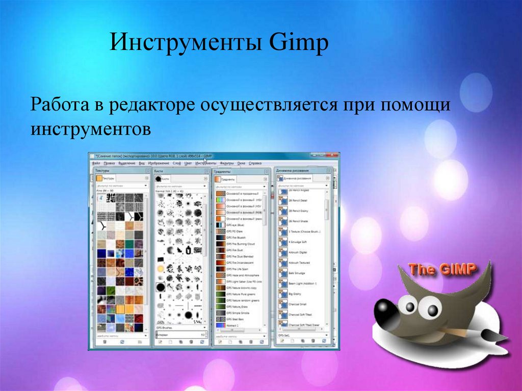 Инструменты GimpРабота в редакторе осуществляется при помощи
