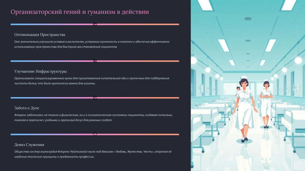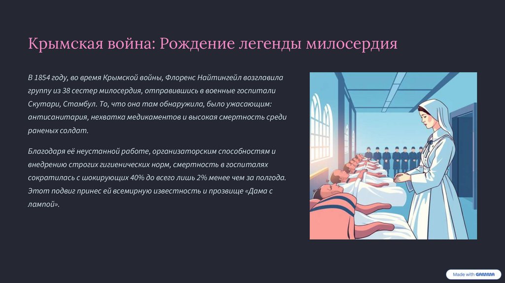и неусыпную заботу, которую Флоренс Найтингейл дарила каждому