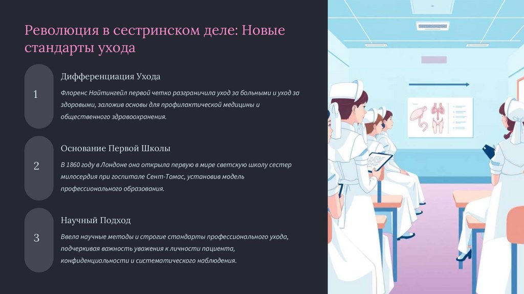 Ввела научные методы и строгие стандарты профессионального ухода,
