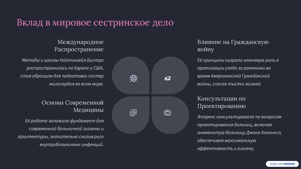 Её жизнь и работа служат примером для миллионов медсестер по всему миру, которые