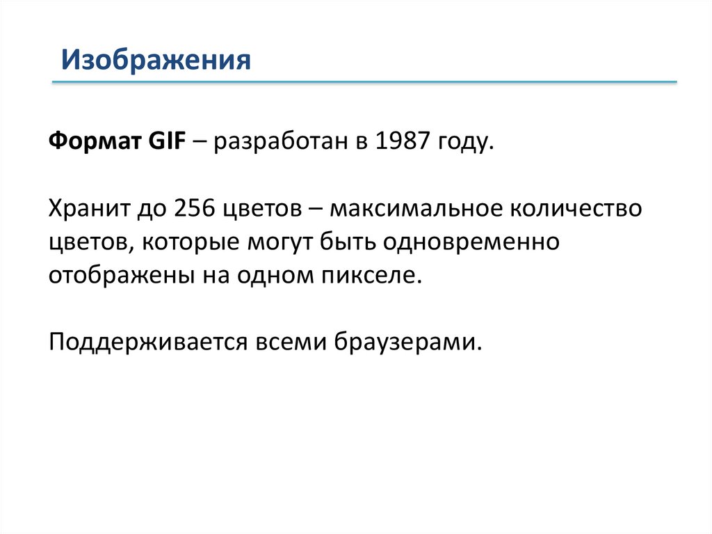 ИзображенияФормат GIF – разработан в 1987 году.