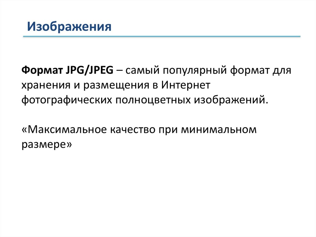 ИзображенияФормат JPG/JPEG – самый популярный формат для