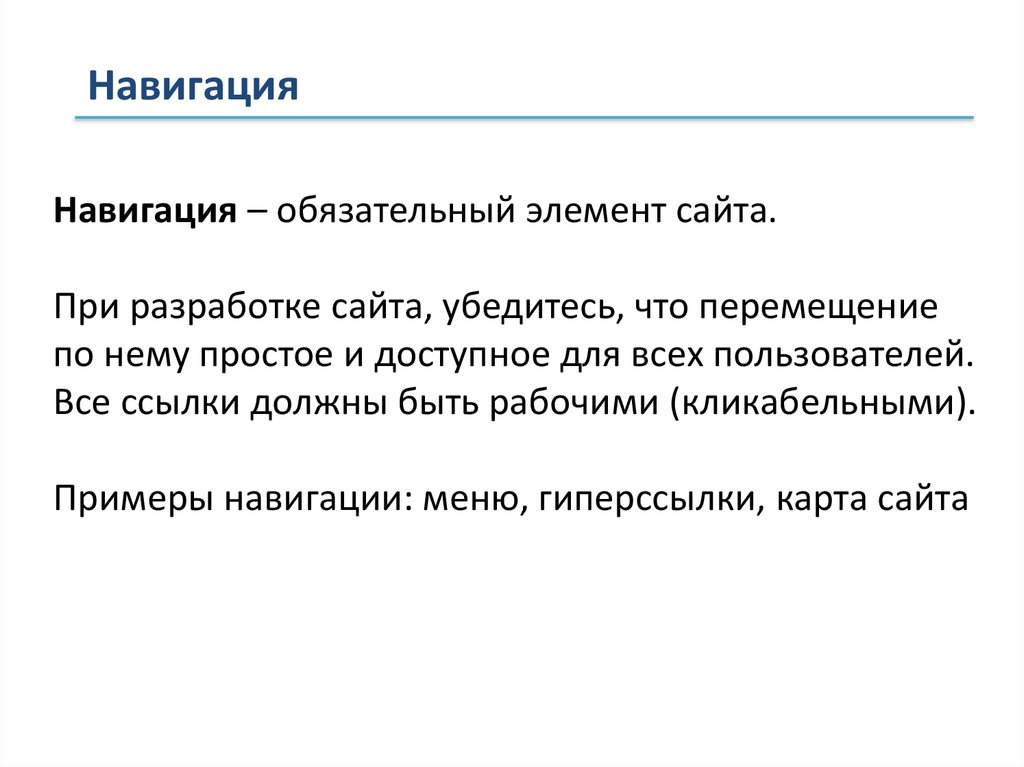 Примеры навигации: меню, гиперссылки, карта сайта