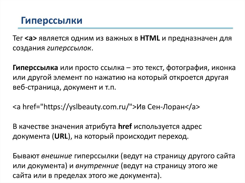 или документа) и внутренние (ведут на страницу этого же
