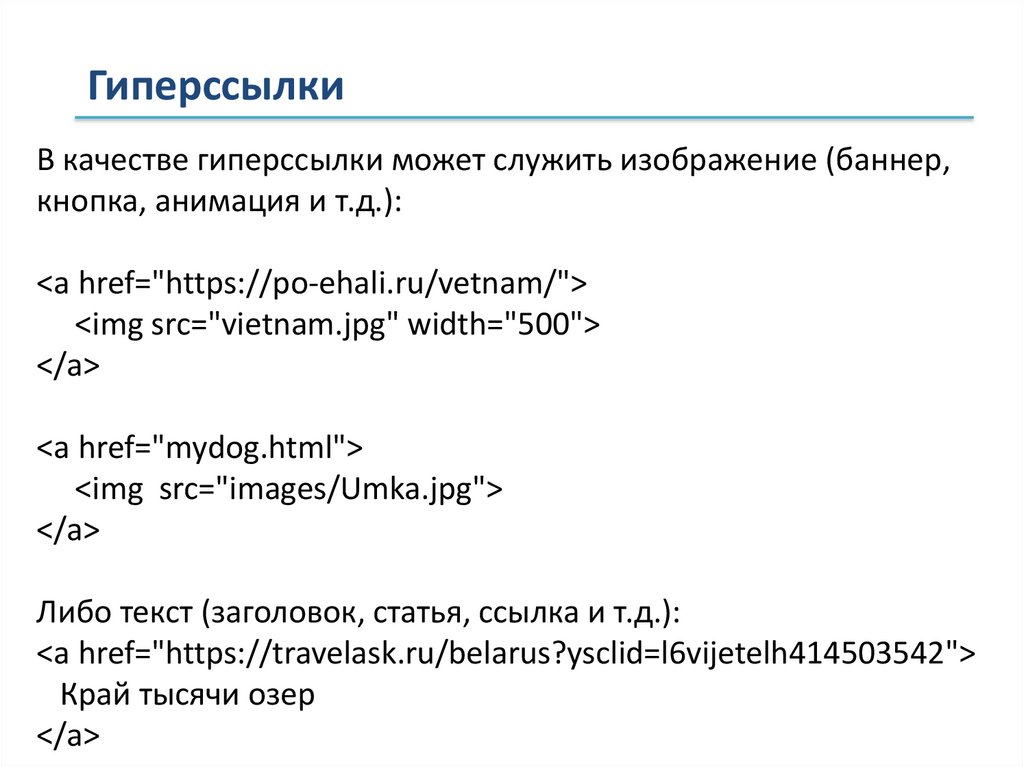 ГиперссылкиВ качестве гиперссылки может служить изображение (баннер,