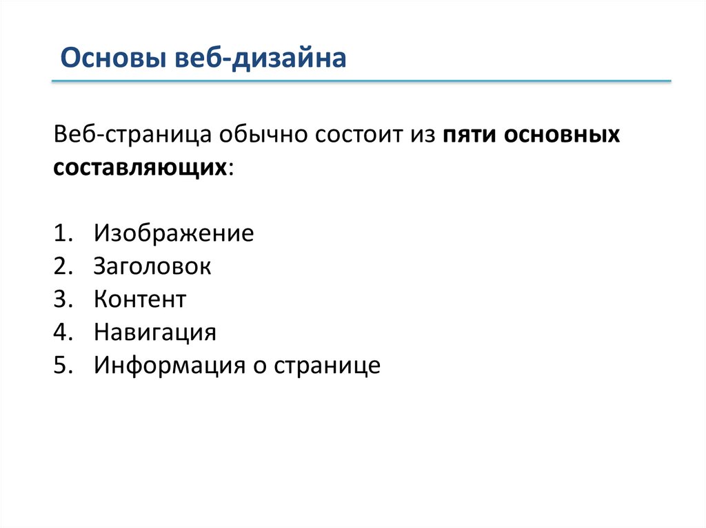 Основы веб-дизайнаВеб-страница обычно состоит из пяти основных