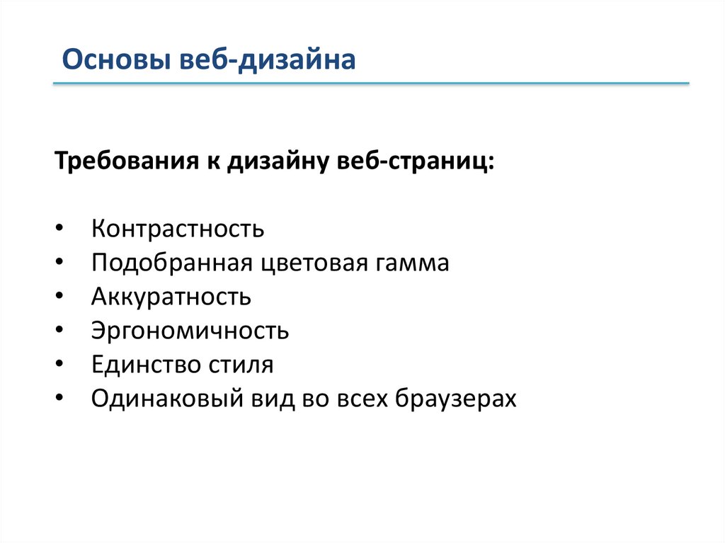 Основы веб-дизайнаТребования к дизайну веб-страниц: