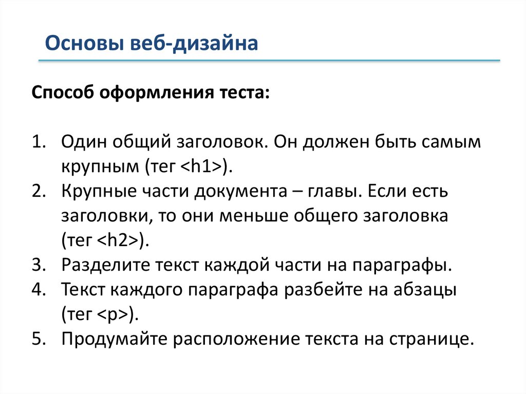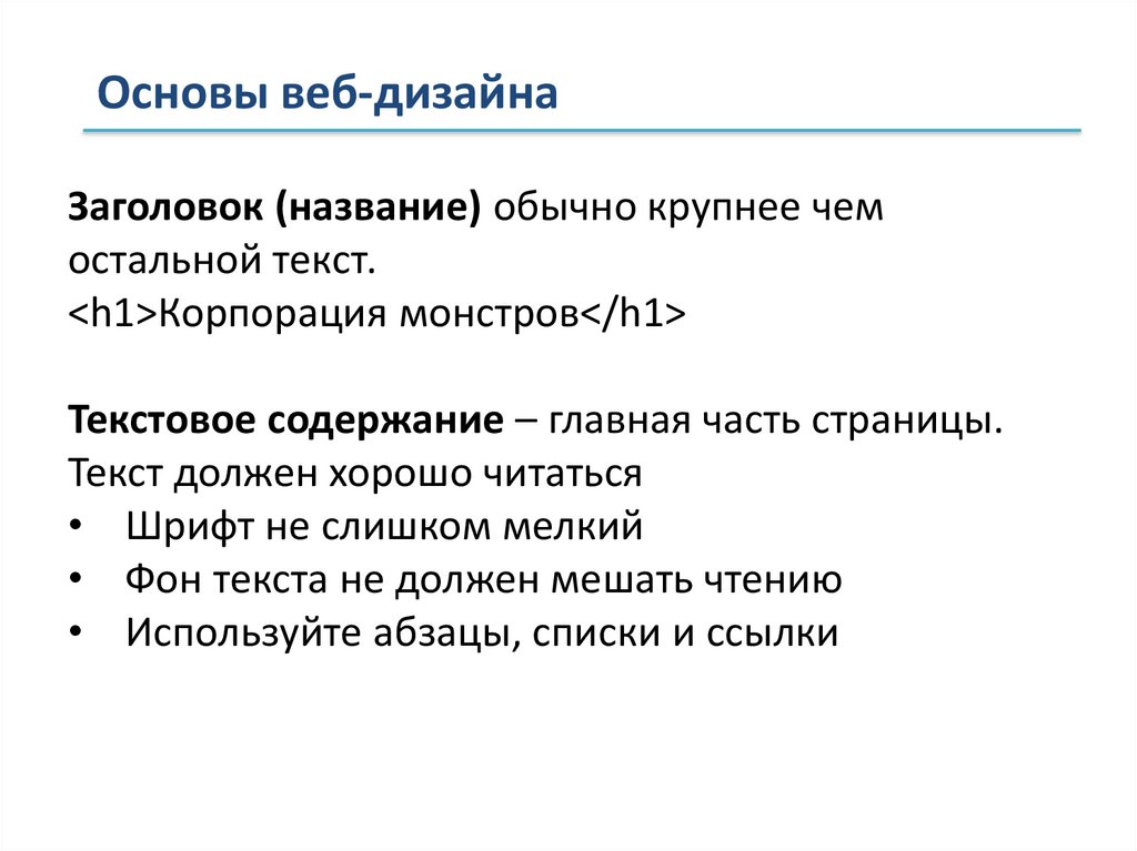 Основы веб-дизайнаЗаголовок (название) обычно крупнее чем