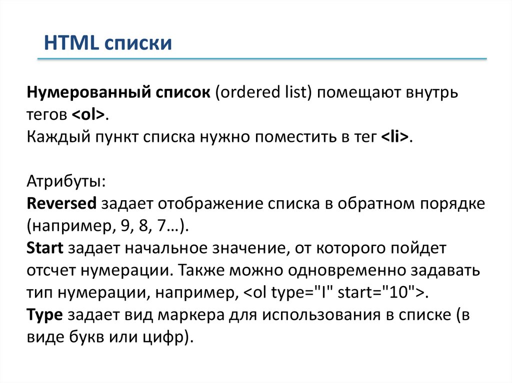 HTML спискиНумерованный список (ordered list) помещают внутрь
