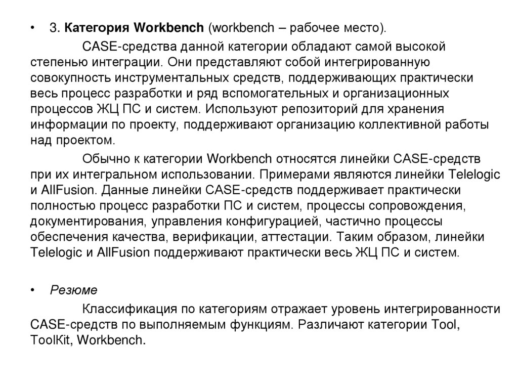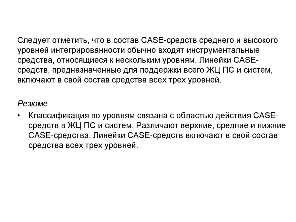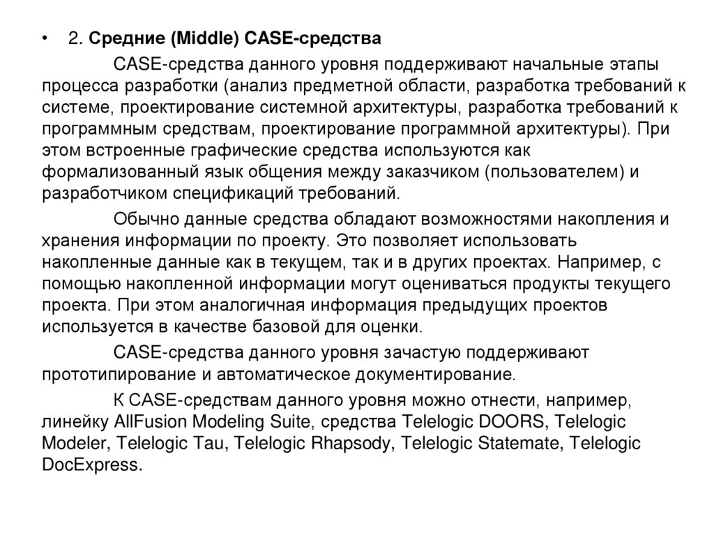 Следует отметить, что в состав CASE-средств среднего и высокогоуровней интегрированности обычно входят инструментальные