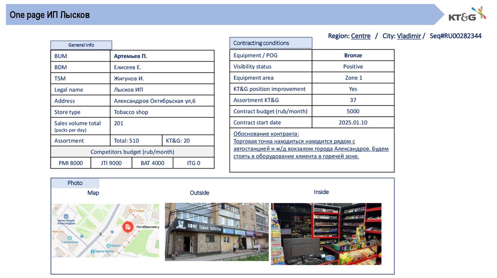 One page ИП ЛысковRegion: Centre / City: Vladimir / Seq#RU00282344