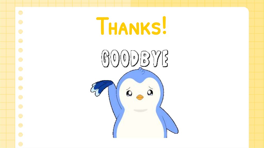 Hide or delete the “Thanks” slide and the mention to Slidesgo in the credits.