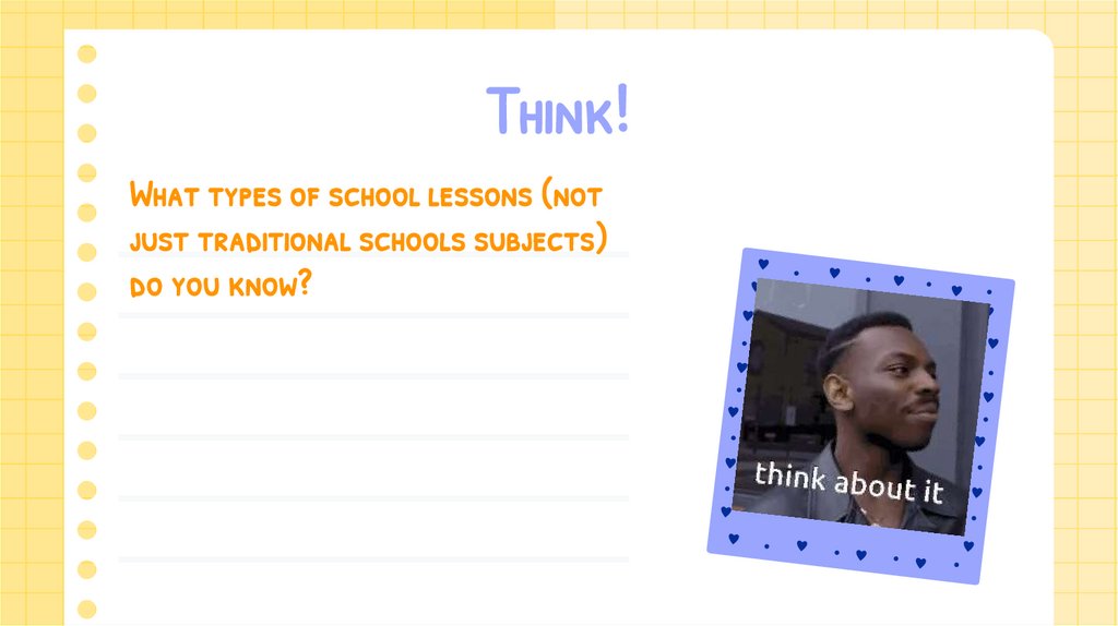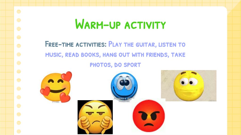 Warm-up activityFree-time activities: Play the guitar, listen to