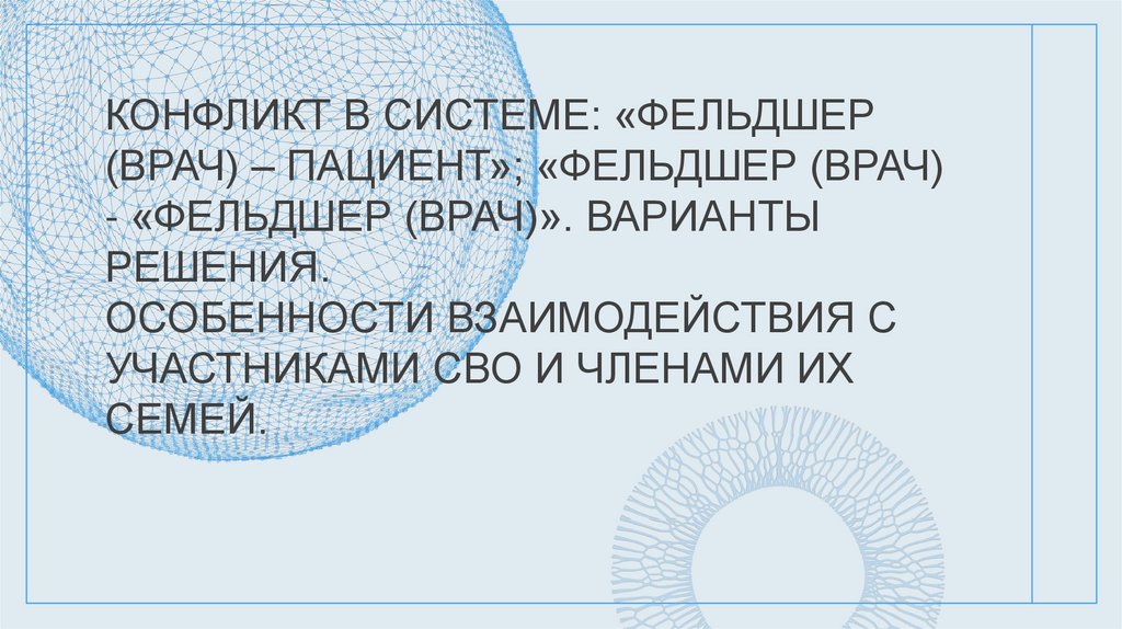 1. Конфликт в системе: «фельдшер (врач) – пациент»; «фельдшер (врач) - «фельдшер (врач)». Варианты решения. Особенности