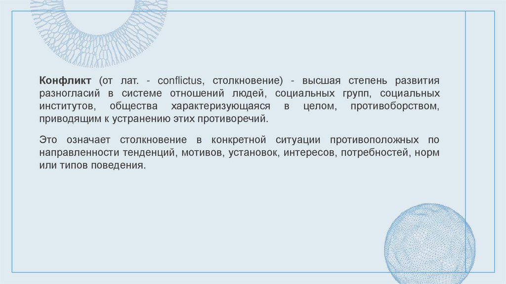 Конфликт (от лат. - conflictus, столкновение) - высшая степень развитияразногласий в системе отношений людей, социальных групп, социальных