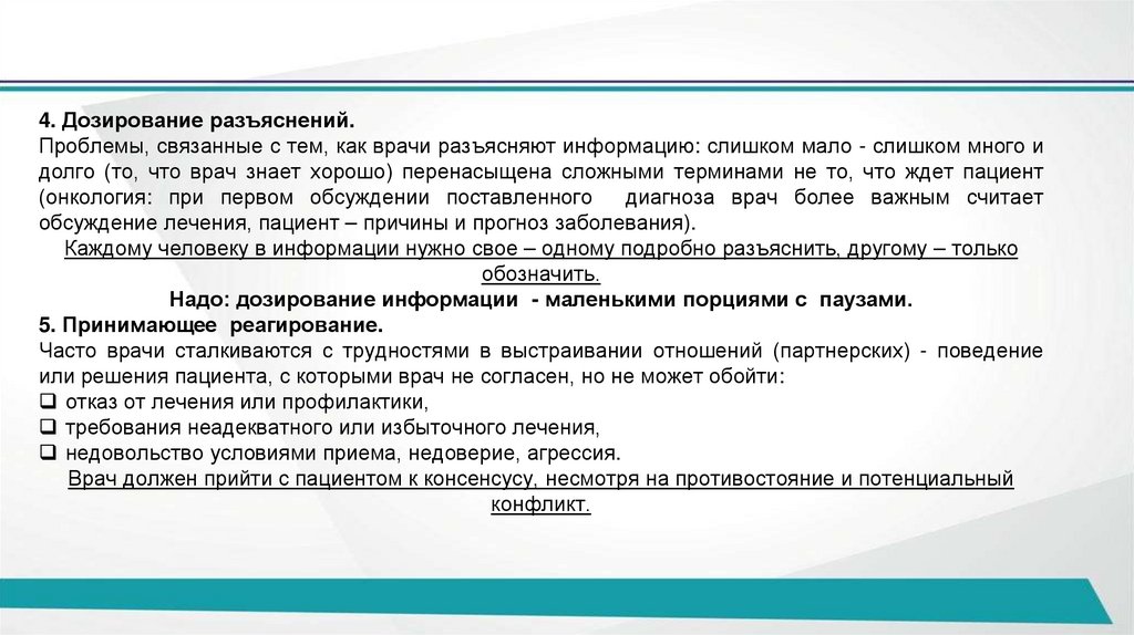 Недостаточно общается с пациентом. Если выдать информацию завуалированно или в