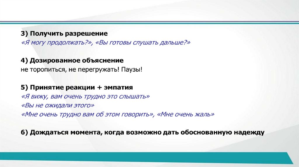 И с п ол ь з о ва ть четкие, ко р о т к и е ф р а з ы (не бол ее
