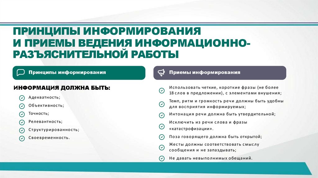 ПРИНЦИПЫ ИНФОРМИРОВАНИЯИ ПРИЕМЫ ВЕДЕНИЯ ИНФОРМАЦИОННОРАЗЪЯСНИТЕЛЬНОЙ РАБОТЫ