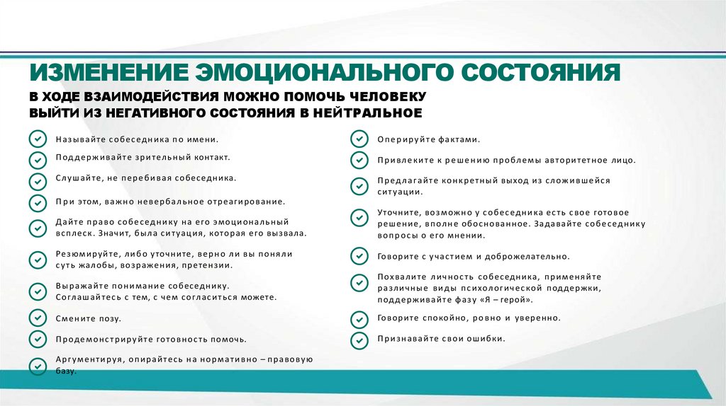 ИЗМЕНЕНИЕ ЭМОЦИОНАЛЬНОГО СОСТОЯНИЯВ ХОДЕ ВЗАИМОДЕЙСТВИЯ МОЖНО ПОМОЧЬ ЧЕЛОВЕКУ