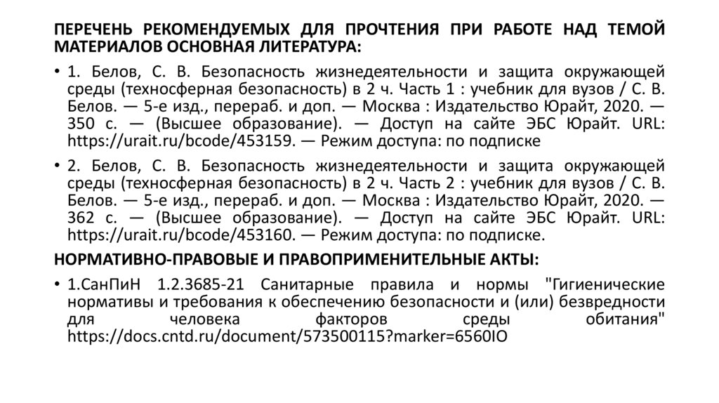 • 2. Белов, С. В. Безопасность жизнедеятельности и защита окружающей