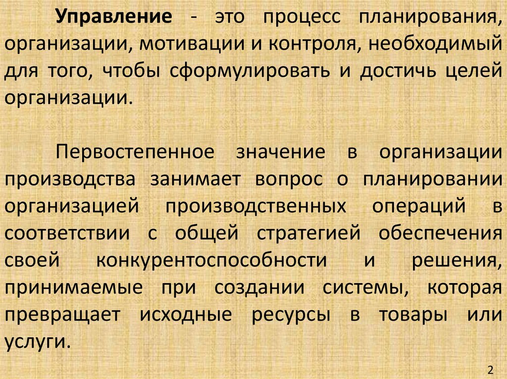 Управление - это процесс планирования,организации, мотивации и контроля, необходимый