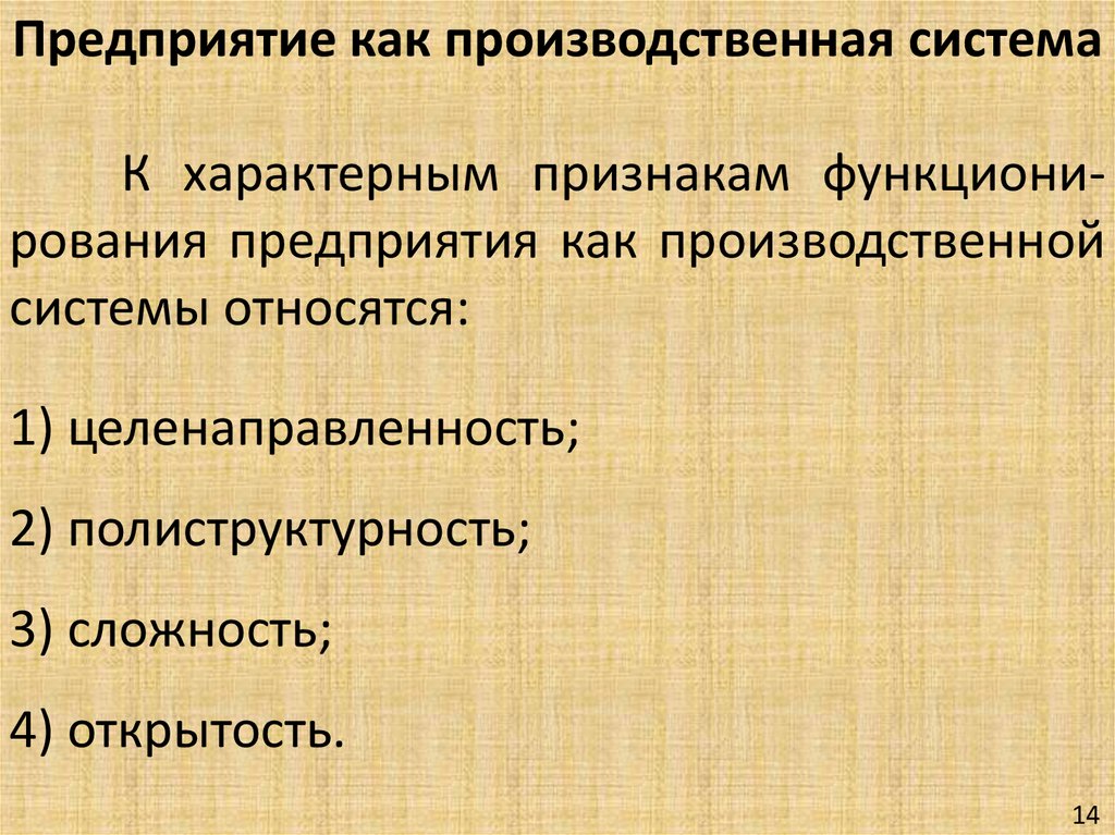 Предприятие как производственная системаК характерным признакам функционирования предприятия как производственной