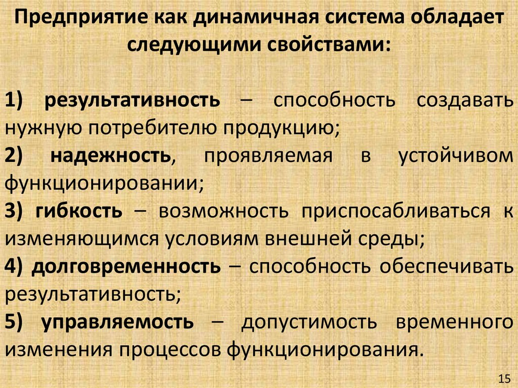 Предприятие как динамичная система обладаетследующими свойствами: