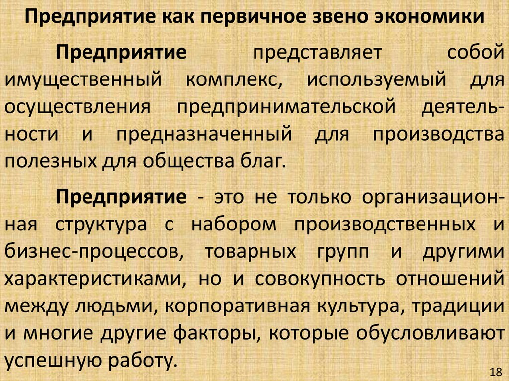 Предприятие как первичное звено экономикиПредприятие