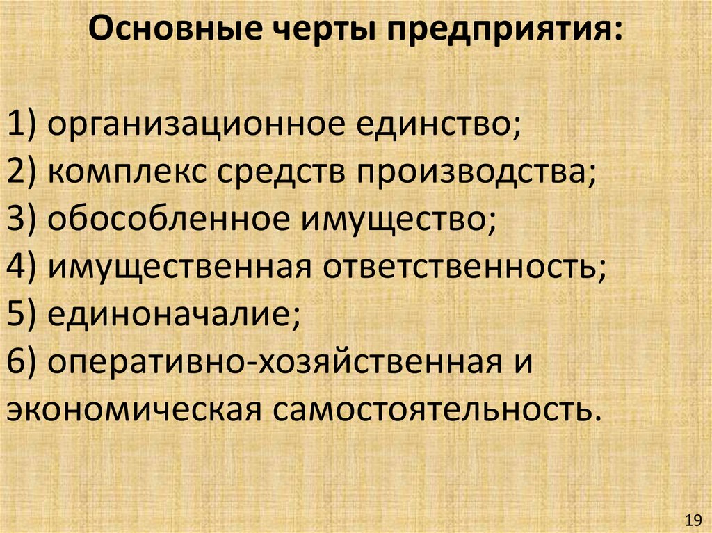 Основные черты предприятия:1) организационное единство;