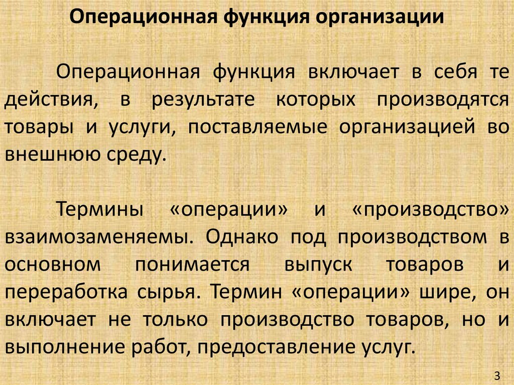 Термины «операции» и «производство»