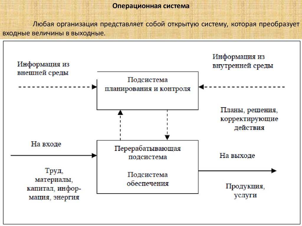 Операционная системаЛюбая организация представляет собой открытую систему, которая преобразует