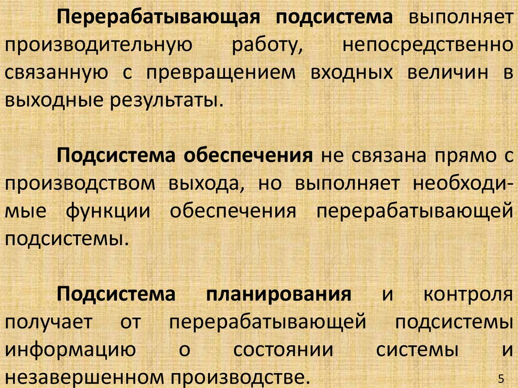 Перерабатывающая подсистема выполняетпроизводительную