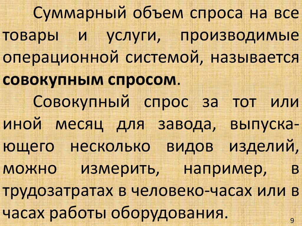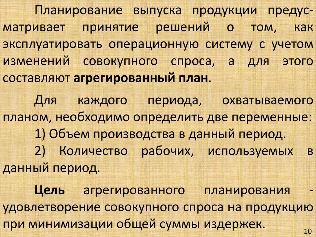Цель агрегированного планирования удовлетворение совокупного спроса на продукцию