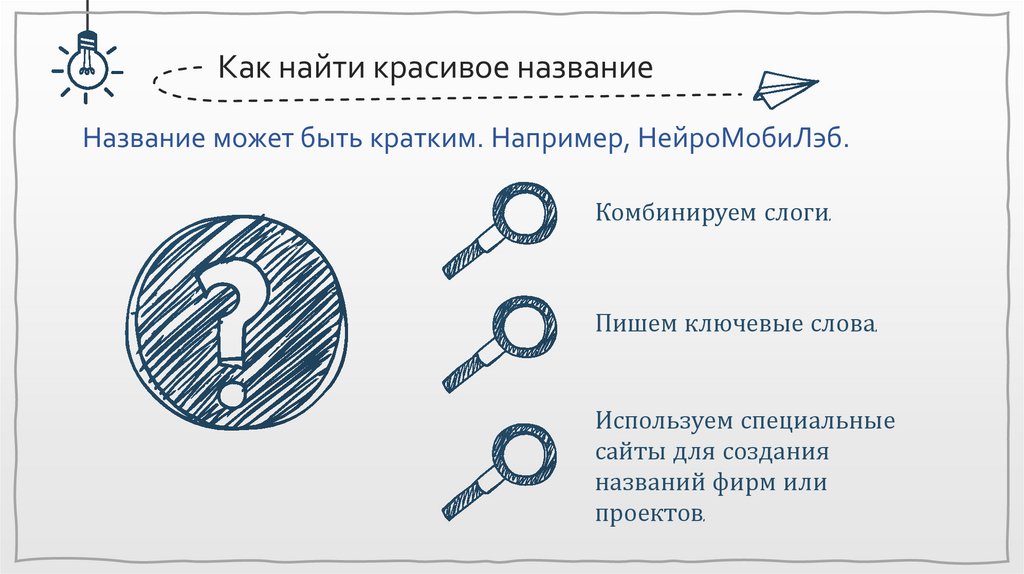 Как найти красивое названиеНазвание может быть кратким. Например, НейроМобиЛэб.