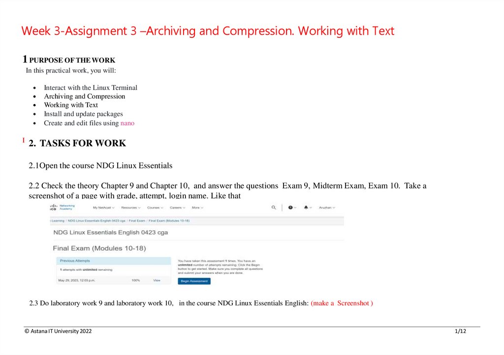 Week 3-Assignment 3 –Archiving and Compression. Working with Text1 PURPOSE OF THE WORK