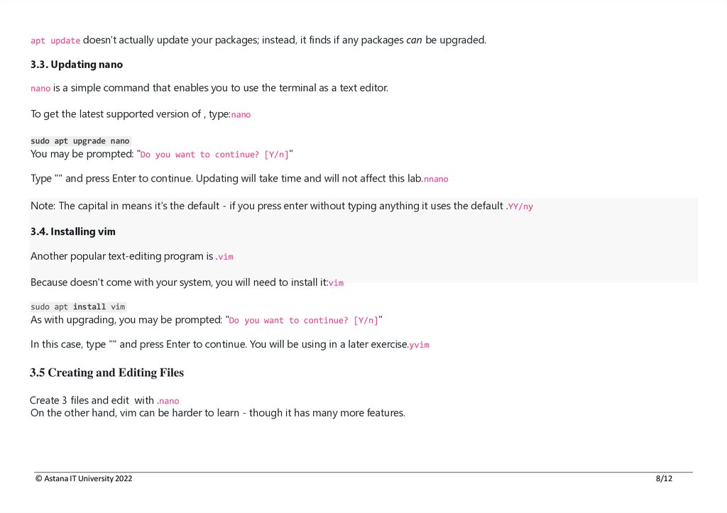 apt update doesn't actually update your packages; instead, it finds if any packages can be upgraded.3.3. Updating nano