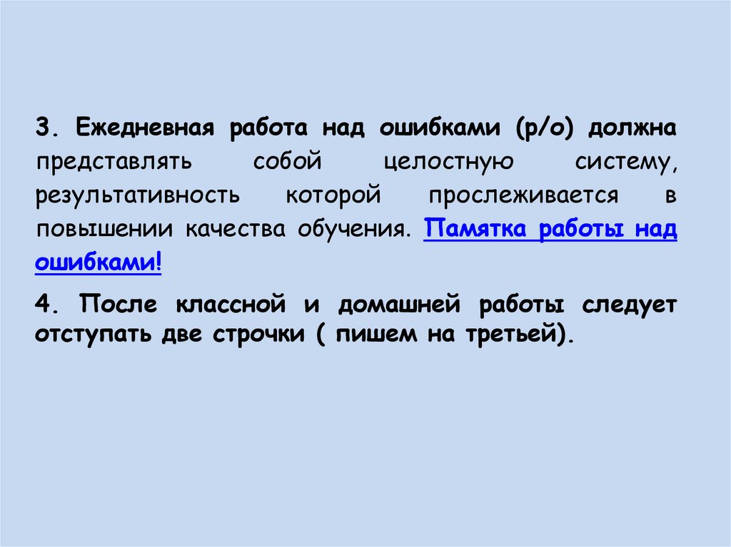 3. Ежедневная работа над ошибками (р/о) должнапредставлять