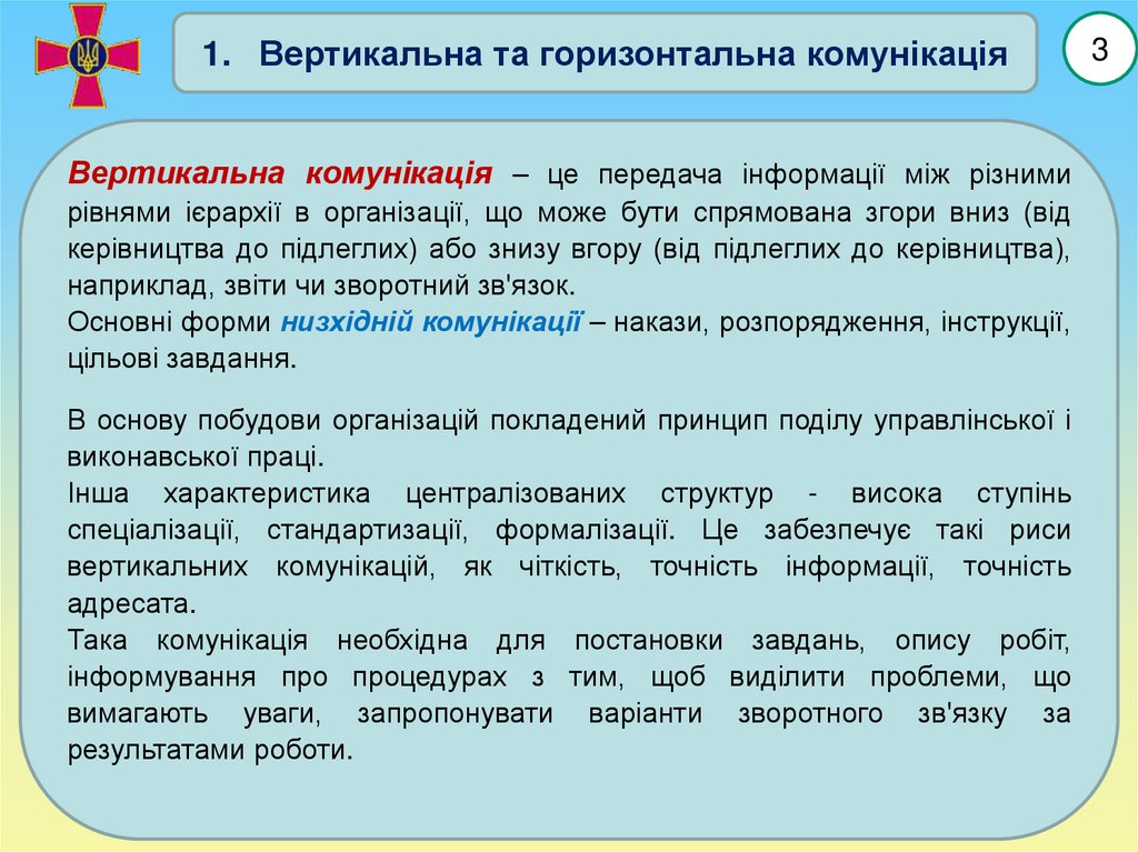 НАВЧАЛЬНІ ПИТАННЯ1. Вертикальна та горизонтальна комунікація.
