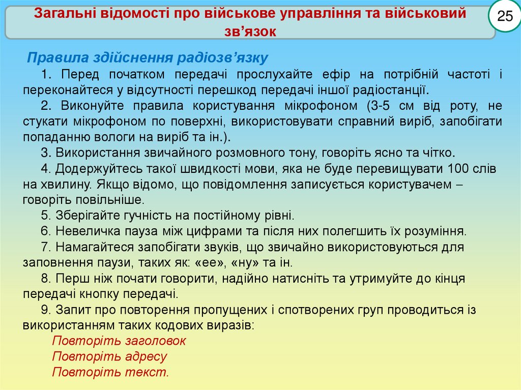 Радіообмін вимагає чітких, коротких фраз, використання позивних,