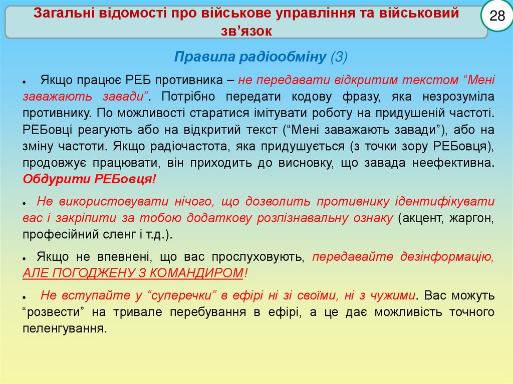 Якщо працює РЕБ противника – не передавати відкритим текстом “Мені