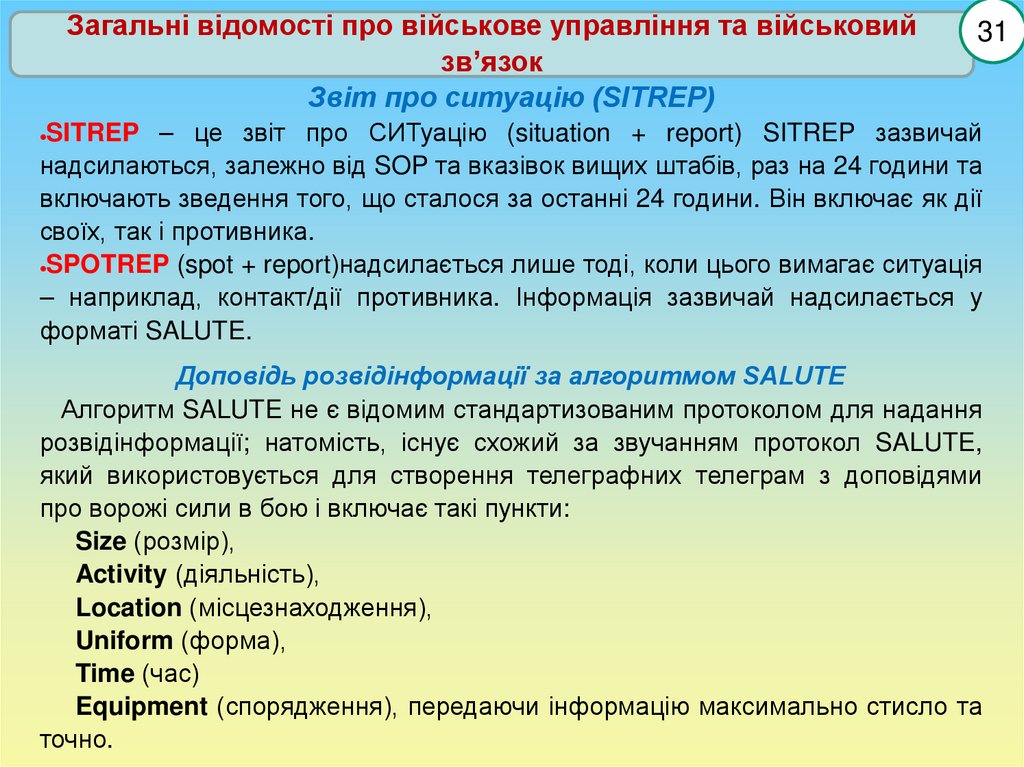 SITREP – це звіт про СИТуацію (situation + report) SITREP зазвичай