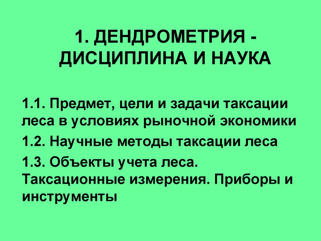 1. ДЕНДРОМЕТРИЯ ДИСЦИПЛИНА И НАУКА1.1. Предмет, цели и задачи таксации