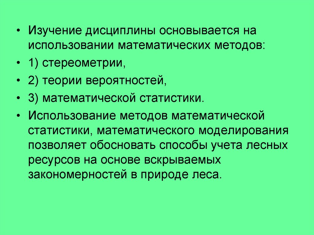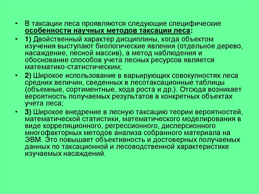• Методической основой таксации леса все в большей мере