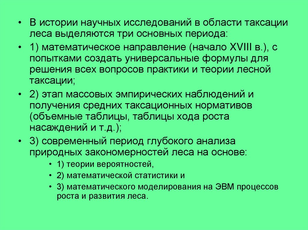 • При описании и учете лесных массивов лесная таксация:• 1) глубоко анализирует влияние прежнего ведения