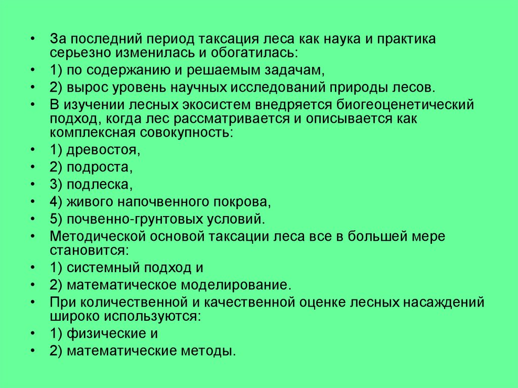 • За последний период таксация леса как наука и практикасерьезно изменилась и обогатилась: