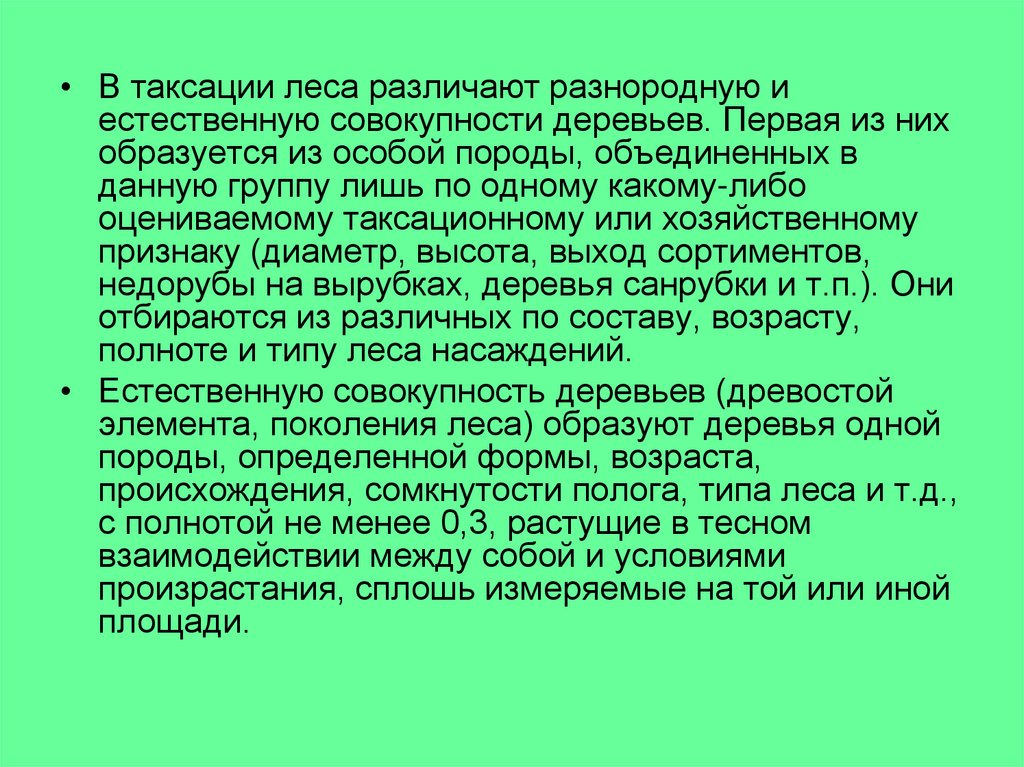 • В таксации леса различают разнородную иестественную совокупности деревьев. Первая из них