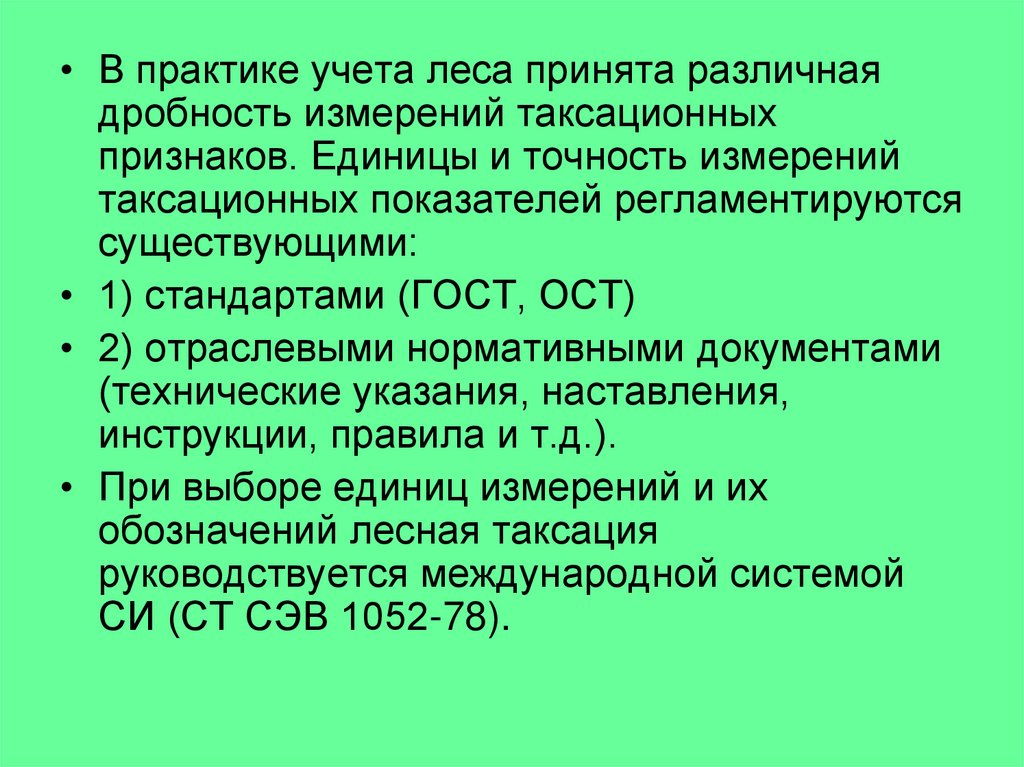 • В практике учета леса принята различнаядробность измерений таксационных